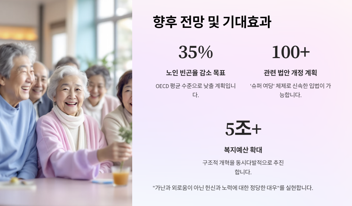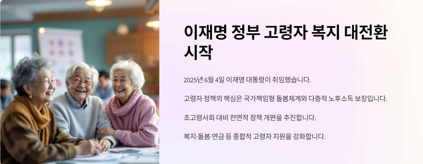 이재명 정부의 고령자 복지 정책은 단순히 혜택을 늘리는 수준이 아니라 복지 구조 자체를 뒤바꾸는 제도적 대전환입니다. 초고령사회로 접어드는 지금, 이 변화는 개인에게도 국가에게도 매우 중요합니다. 부디 복지 사각지대 없이 혜택을 받을 수 있기를 기대합니다.
