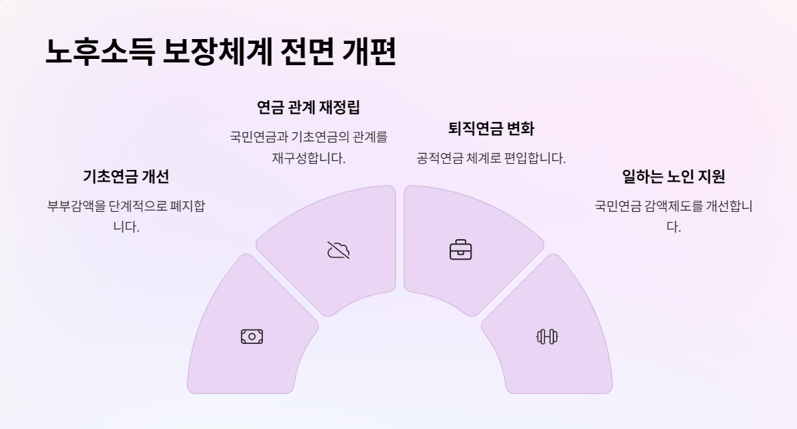 복지 구조의 핵심인 연금제도 개편도 빠르게 추진됩니다. 국민연금과 기초연금의 역할을 재정립하고, 퇴직연금을 공적 연금 시스템으로 통합하는 방향이 제시됩니다. 중장년층의 노후 대비 전략에도 큰 영향을 줄 전망입니다.